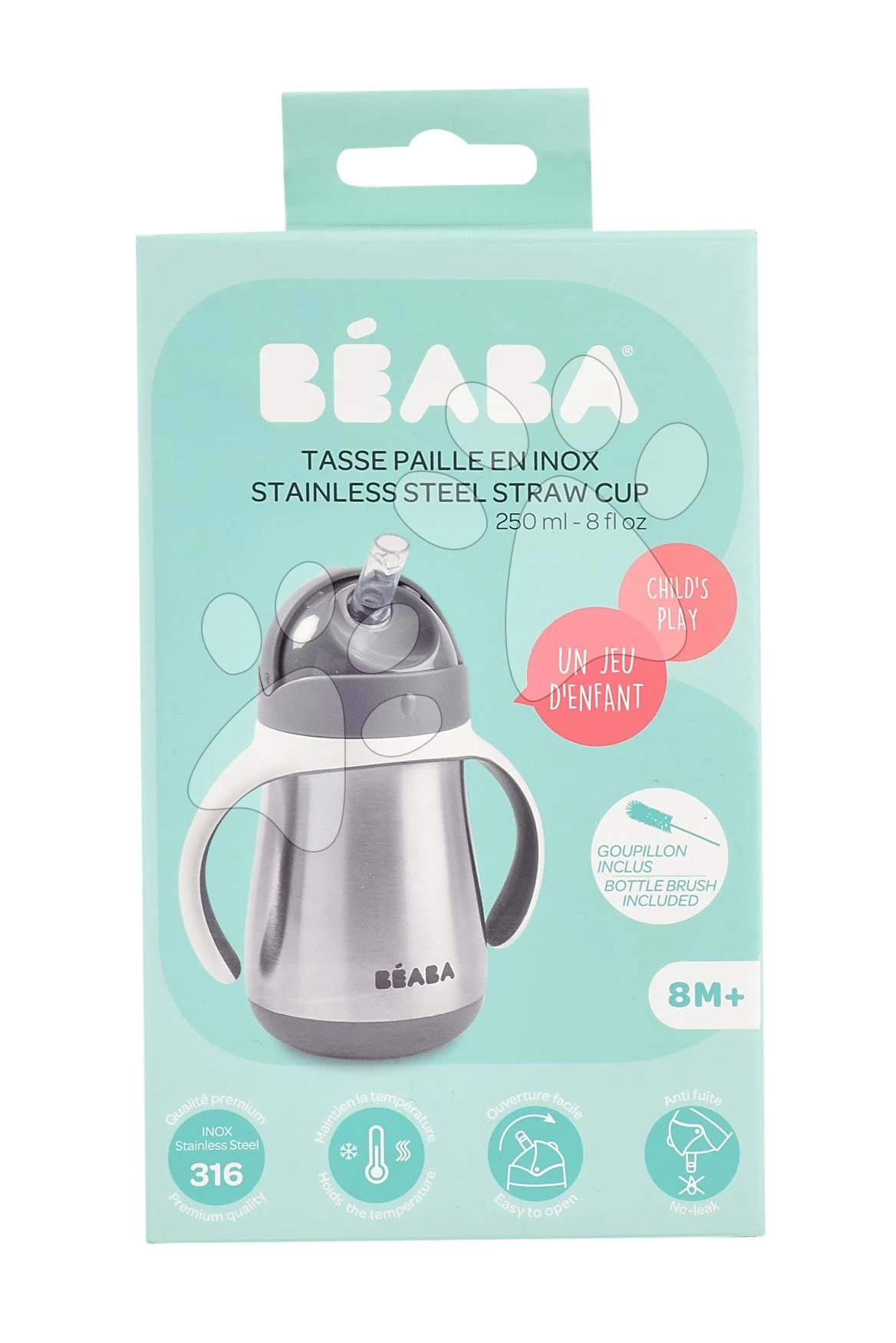 Bidon-Flasche Mit Doppelwand Stainless Steel Straw Cup Beaba Mineral Grey 250 Ml Edelstahl Grau Ab 8 Monaten BE913536