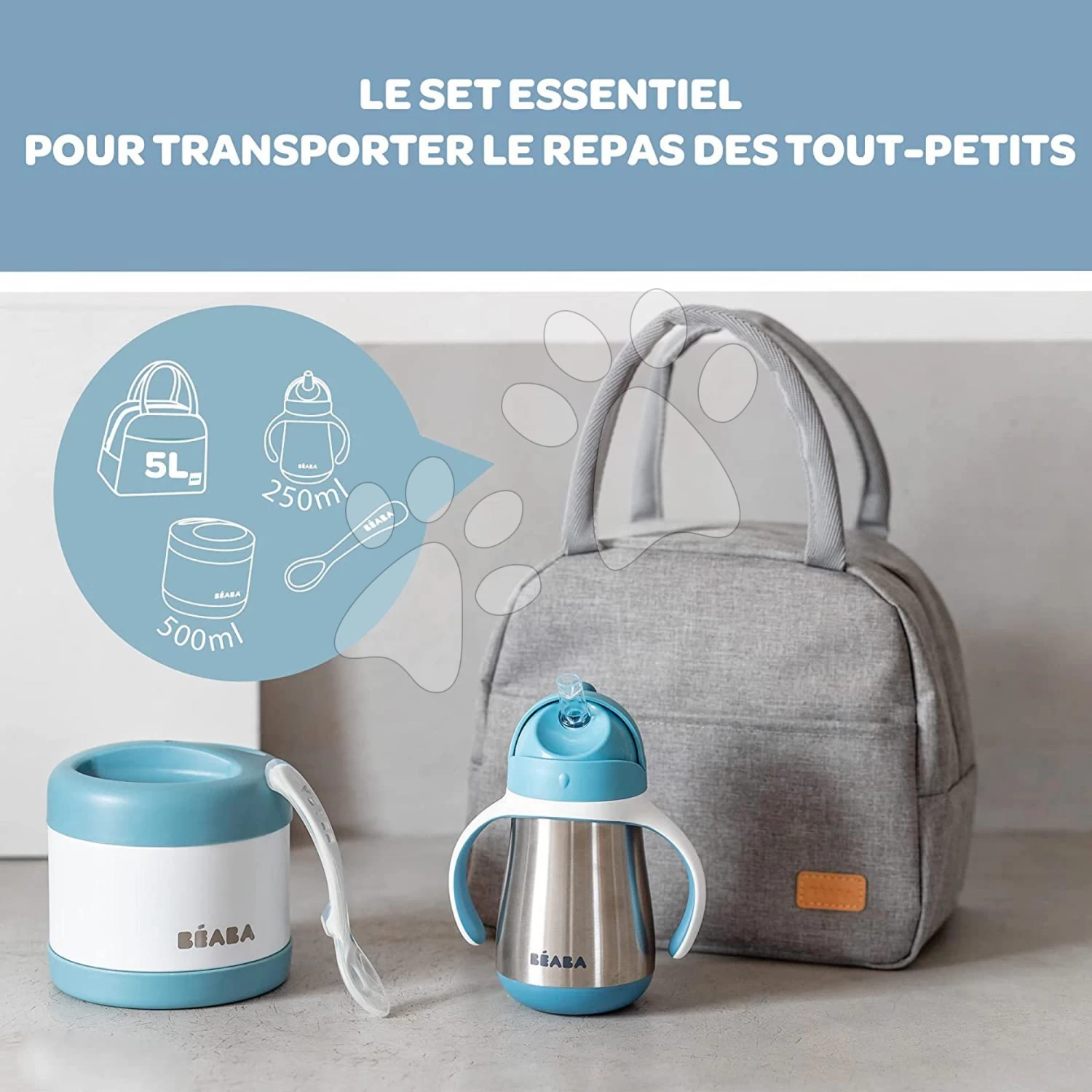 Esszimmer- Sets On-the-go Mealtime Beaba Windy Blue Mit Thermobeutel Und Becher Mit Thermoskanne Für Futter Und Löffel Zum Füttern, Grau-blau Ab 8 Monaten BE913529