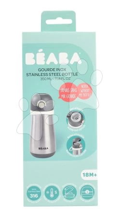 Flasche Bidon Mit Doppelwand Stainless Steel Bottle Beaba Mineral Grey BE913540 350 Ml Edelstahl Grau Ab 18 Monaten BE913540