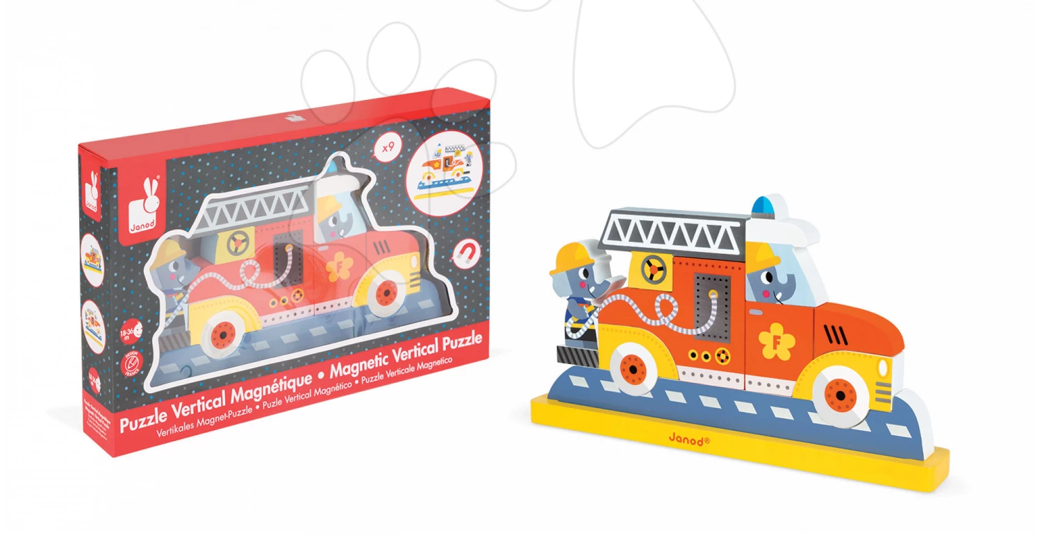 Magnetpuzzle Aus Holz Feuerwehrauto Vertikal Janod 8 Teile Ab 18 Monaten