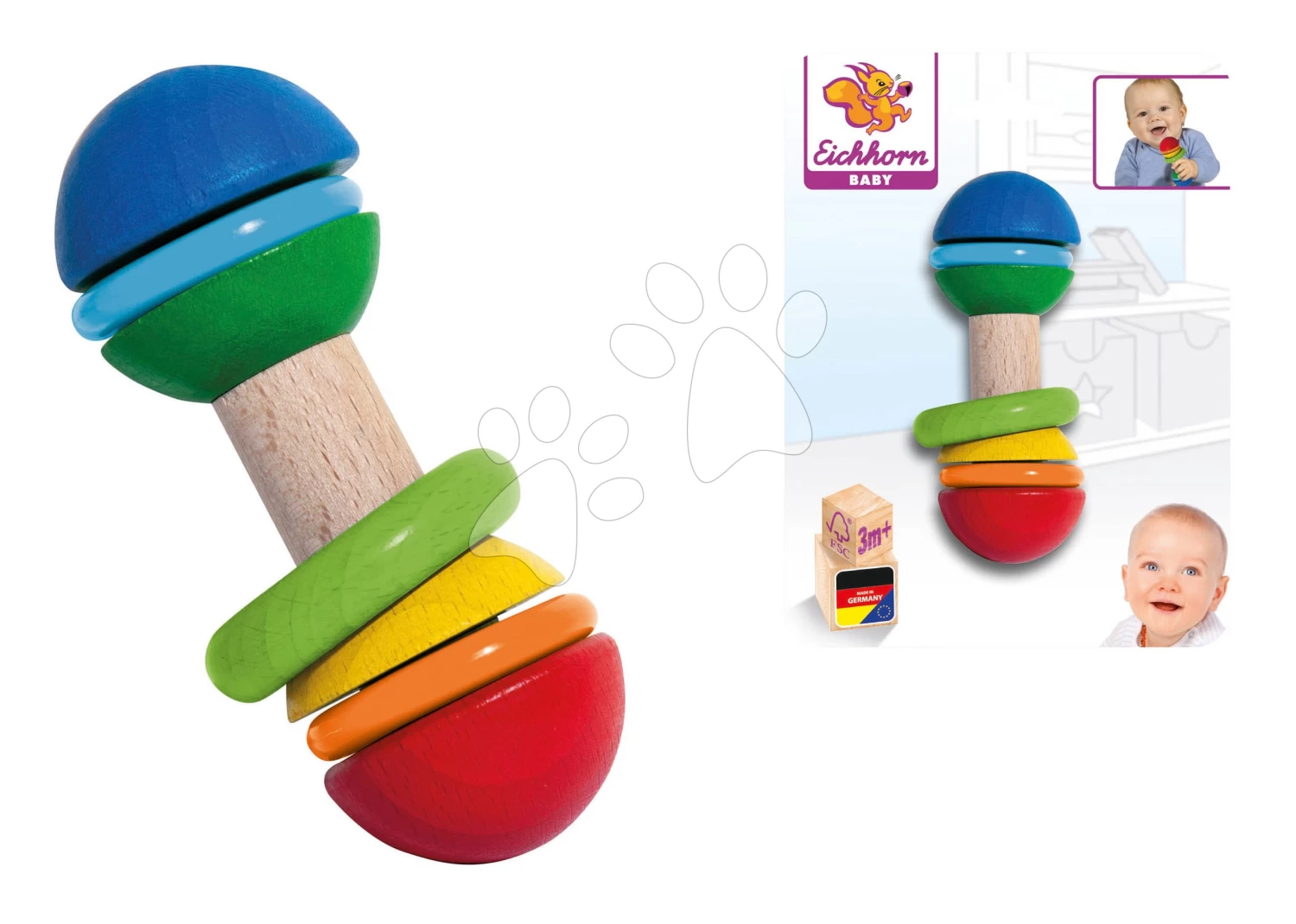 Rassel Aus Holz Bar Grasping Toy Eichhorn Mit Farbigen Ringen Ab 3 Monaten EH17052