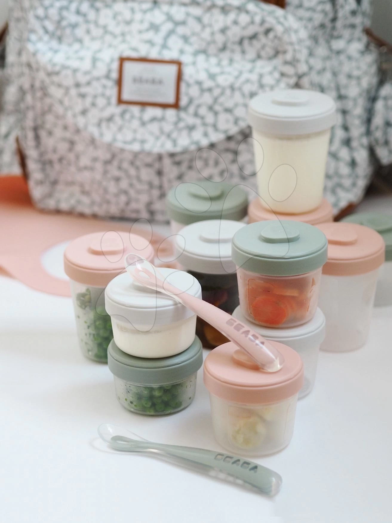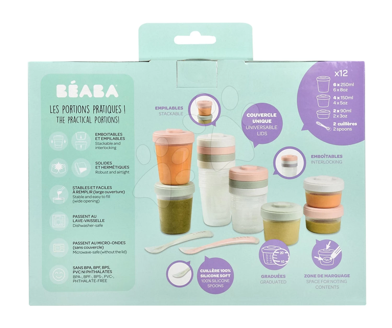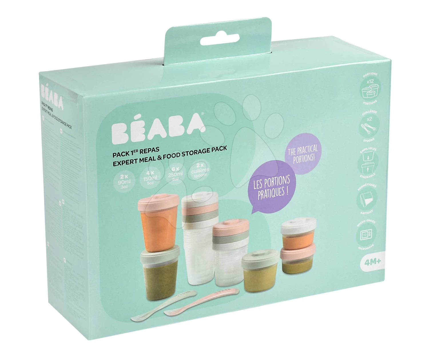 Set Mit 12 Beaba Lebensmitteldosen Expert Meal & Food Storage Pack Eucalyptus 12 Clips Und 2 Silikonlöffel Pink