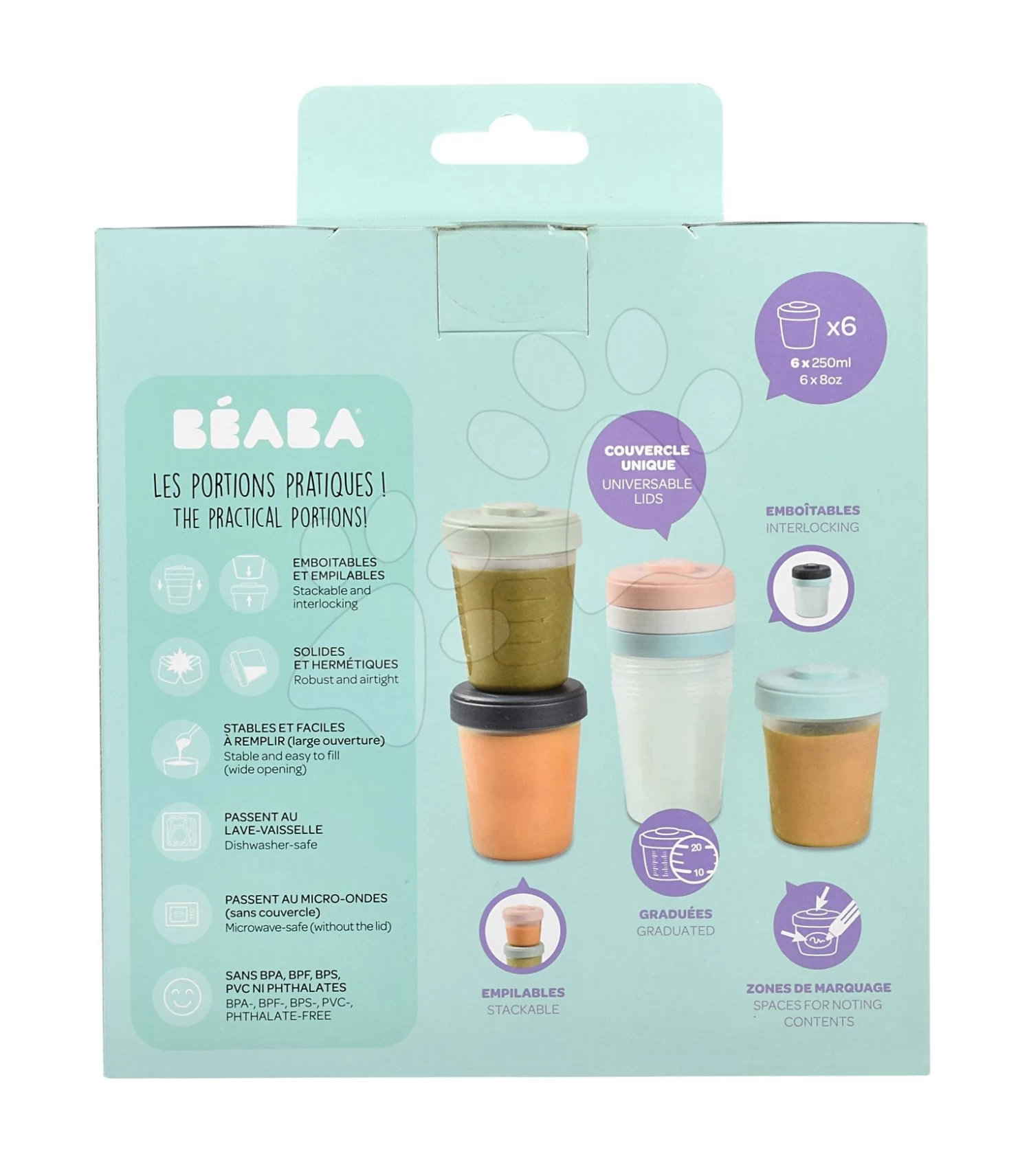 Set Mit 6 Beaba Lebensmitteldosen Toddler Food Storage 6 Clips 6×250 Ml